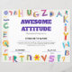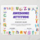 Introducing the Customisable Awesome Attitude Student Class Award, a perfect way to recognise students who embody positivity and enthusiasm! This eye-catching award features a fun design that celebrates a can-do spirit and a great attitude. Personalise it with the student's name, date, and a special message to make it truly memorable. Ideal for classrooms or extracurricular activities, this award inspires students to maintain their positive outlook while acknowledging their contributions to a vibrant learning environment!