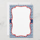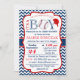 This is a cute baby shower invitation that features a blue and white chevron design with the shower information in a frame outlined in red. You can customise the invitation to include the name, date and place of the shower. Change the font size, colour and style to suit your preferences.