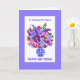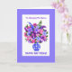 A Birthday Card for you to personalise, with a bouquet of pink, blue and purple flowers, from a handpainted paper collage by Judy Adamson. The recipient's name, front cover message and the inside message can all be customised and this card could be used for many occasions other than birthdays.