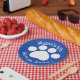 These paper plates display a white paw print on a blue background with the text of your choice. They are great for paw print themed, dog themed, cat themed, or animal themed birthday parties.