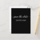 This "Save the Date" postcard stands out with its simple, vertical design, offering a modern twist on traditional wedding invitations. The classic black and white colour scheme exudes elegance and sophistication, making it a timeless choice that complements any wedding theme.