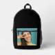 Create a unique and personalised black backpack with your favourite photo on the front pocket. Perfect for school, work, travel, or as a thoughtful gift, this customisable backpack allows you to showcase a cherished memory or special image. Made from durable materials, it offers ample storage space and comfort. Personalise it to reflect your style and make a statement wherever you go. This custom photo backpack is ideal for expressing your individuality and keeping your essentials organised in style.