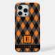 Customisable Black Grey Orange Argyle Pattern iPhone Case