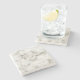 The coasters are gorgeous, a quality feel and heavy weight. They look like a precious archeological find. A rustic stone juxtaposed with a modern floral black and white print. I like the way the print goes slightly imperfect on the cut stone edges giving them a kind-of natural beauty.