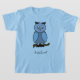 Customisable T-Shirt for all children who love owls and birds. Nice design with a blue owl in comic style. Personalise the name and make it unique.