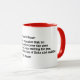 Great product, good delivery time, and an awesome idea for a gift! It was even better than I could have imagined, the customisation is incredible. The colour is perfect, it's dishwashable and microwaveable, the text print on the mug looks exactly like I wanted it to look and best of all, it's a large sized mug that you can drink plenty of coffee or whatever you want! I gifted this to my father and he loves it. He drinks coffee with that mug everyday :) I recommend.