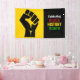 Motivational BLACK HISTORY MONTH Banner showing black raised fist graphic against a rich yellow background on the left, and CELEBRATING BLACK HISTORY MONTH in bold white, red, yellow, green typography set against a rich black background on the right. ALL TEXT IS CUSTOMIZABLE plus you have the option to add up to three lines of additional text at the bottom (will appear in smaller white typography), eg. event details. Other varieties of BHM cards, invitations, clothing and decor by Berean Designs are available.