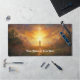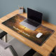 The sun rises as a solitary, silhouetted figure stands in the centre of a forest clearing to greet the golden light of the heavens. Fluffy clouds part as the great star casts its fiery rays onto the world, illuminating everything in its glorious warmth. Let this magical scene grace the surface of your desk or table to bring you the promise of another day and the beauty of the sun. Designed to protect your surfaces and provide a smooth mousing experience, this jubilant design is sure to bring a celestial glow to your computing experience.