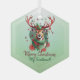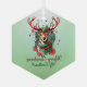 The image on this ornament is a portrait of a Christmas reindeer head, presented in a front view.