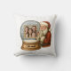 This elegant throw pillow design features a detailed Christmas snow globe with a clean white background and a beautifully decorated base with subtle gold accents. Inside the globe, a square empty space is reserved for adding a personalised family photo or image. Santa Claus stands outside the globe, resting his hands on his chin as he gazes warmly at the scene. Delicate falling snowflakes add a festive touch to this cosy and heartwarming holiday decor, perfect for gifting or personal use.