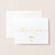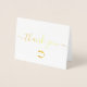 Personalise this simple and easy to use thank you folded real gold foil card template with your company's logo, message, name, and social media handles. Let your clients, customers, patrons know you are grateful for their support during these uncertain times. Featuring a gold foil, modern text "thank you" script with long-tailed embellishments on white