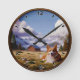 Customisable Cute Corgi Scenic Background Round Clock