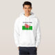 A hooded sweatshirt to customise with a cute Welsh Red Dragon on a green and white background, and 'Wales forever!' in black lettering; from a handpainted watercolour illustration by Judy Adamson.