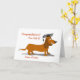 This cute customisable graduation template sports a grinning cartoon dachshund dog wearing a graduation cap. The sample reads, "Hot dog! You did it!"