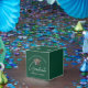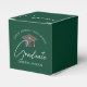 These modern dark green custom senior graduation party favour boxes features your high school or college name for the class of 2026. Customise with your graduating year under the chic handwritten script and grey grad cap for great personalised graduate party favours.