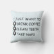 This humourous pillow displays the text, "I just want to drink coffee, clean teeth, and take naps." This is a great item for coffee-loving dental hygienists. The text is fully customisable, so feel free to replace the text with your own words of choice.
