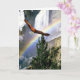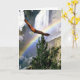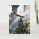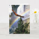 An Eagle soars high over a mountain top covered with snow and a rainbow in the horizon. Flying high up over the pine trees and valley below. This card design can used for various club, institution members for events - announcements - ceremonies - awards - or as an invitation, Congratulations, Thank you cards or for the newly acquired Eagle rank level achievement - in recognition of their honorable accomplishments - status -- achievement. Or ... for any special Eagle image need. Customise the text to suit front and inside. Have fun!