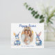 In the middle, you have a customisable photo space in the shape of an Easter egg—perfect for showcasing a cherished family photo, a fun Easter egg hunt moment, or your pet looking egg-stra cute in bunny ears. The customisable text on both sides allows you to add your own special message, making it uniquely yours.