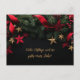 Celebrate the festive season with this elegant Christmas card, featuring a beautifully detailed wreath adorned with red ribbons, golden stars, and lush green pine. The luxurious dark background enhances the festive elements, creating a sophisticated and warm holiday greeting. The front of the card includes a heartfelt message, "Frohe Festtage und ein gutes neues Jahr!" (Merry Holidays and a Happy New Year!), while the back offers fully customisable text and address fields, allowing you to personalise your holiday wishes for loved ones. Perfect for sending a touch of elegance this Christmas.