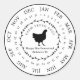 This adorable egg carton laid date sticker will help your keep track of your eggs and show customers to see just how fresh your farm eggs really are! It features a hen silhouette in the centre under the text "Farm Fresh Eggs". Personalise the sticker 2 lines of customisable text. You can include the name of your farm, homestead or business or whatever text you wish to add. The outer text includes 12 months and 31 days. Circle the month and day to indicate the freshness of your eggs. Black and white.