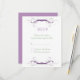 The text on this purple, green, and white abstract floral rsvp card is fully customisable. It is currently set to print on metallic ice white paper which adds a shimmery flair to this card. If you don't want the shine, it is easy to change the paper type to whatever you want. You can also change the background colour and/or font or font colour of this card using the customise option. Purple and green is a popular wedding colour theme.