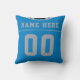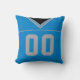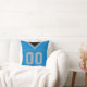 Easy to edit football or lacrosse custom jersey design throw pillow. The colours of this design is light blue with silver collar trim the 'skin' colour can be changed, just click 'CUSTOMIZE' to choose a different colour. Just use the boxes to the right of the image to insert your own choice of name and number on the back and number on the front.