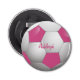Customisable Football Soccer Ball Pink and White Bottle Opener