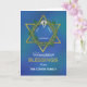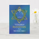 The Star of David is featured on this customisable name from you card. This Hanukkah card has a gold look with a wreath woven around it. A white bow is at the top. Inside the star are the three words of Love, Peace and Happiness as you wish Hanukkah blessings.
