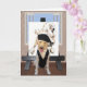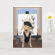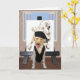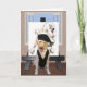 Humourous, customisable card for a lady's birthday or other, with a handsome yellow Lab in a black leather vest and beret in front of a drawing of a white poodle. Inside it says, "Joyeux anniversaire, magnifique!", which is the French translation I got for "Happy Birthday, gorgeous!" You can change the text, font, font size and colour. The French Poodle is thanks to WPClipart.com The wall paper and window are thanks to publicdomainpictures.