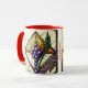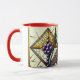 Start your day under the soft glow of the Customisable "Grapes and Wheat" Stained Glass Mug. This high-quality ceramic mug features an exquisite circular illustration of deep amethyst-purple grapes and vibrant emerald-green wheat stalks, all set within a classic diamond-shaped cathedral glass frame.