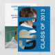 Customisable GRAD Cutout Graduation Announcement Card. The word GRAD is cut out on the front to show your favourite vertical photo peeking through. You also add the graduation year. The back side allows you to show your photo on the bottom. On the top of the card add the graduates name and all your open house or graduation details.