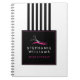 Customisable Chic Black and White Note Book on a Black and White Background. This designer makeup artist notebook is created by Colourful Designs Inc. Copyright 2016. This stylish and chic notebook is a perfect gift idea for any hair stylist. This personalised notebook is affordable and stylish. Whether you have a friend who is a hair stylist or in the beauty industry this high end notebook is a great holiday gift for under fifteen dollars.