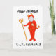 A fun Halloween Photo Card for you to customise, with a little red devil, from a handpainted illustration by Judy Adamson.