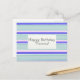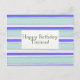 Cheerful Happy Birthday card with pastel pink, blue and white stripes. Label text is customisable. Designed with a smile by iolantesdesigns :-)!