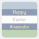 Horizontal pastel light blue, light green and dusty blue striped pattern and customisable text: Happy Easter. Click edit to change the text and name to your liking,