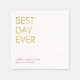 These modern and simple wedding napkins include the text Best Day Ever on them with space to include the couples names, wedding date, and a hashtag for their wedding! Currently the Best Day Ever Text is in faux gold foil and the text at the bottom is in marsala but can be customised to your wedding colours by selecting customise further. Also available in our shop in a solid colour - that you can customise for your wedding or rose gold foil. Can also be used for wedding events such as showers and engagement parties!