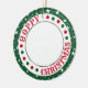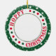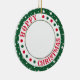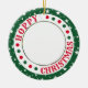 Bunny lovers, Hoppy Christmas pun customisable ceramic tree ornament in green. Add an image of your pet rabbit to this double sided photo Christmas tree decoration.