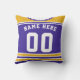 Easy to edit ice hockey or lacrosse custom jersey design throw pillow. The colours of this design are purple and gold, the white parts can be changed, just click 'CUSTOMIZE' to choose a different colour. Just use the boxes to the right of the image to insert your own choice of name and number. You can also add either a captains 'C' or alternate 'A' or the sweater number on the front too.