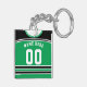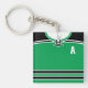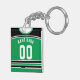Easy to edit ice hockey / lacrosse / sports jersey keychain, just use the boxes to the right of the image to insert your own choice of name and number on the back, and a either a captain's 'C', alternates 'A' or a number on the front. This jersey design is in green and black, the background colour can be changed, just click 'CUSTOMIZE'.