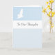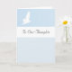White Bird in Flight on Pale Blue This understated card is titled 'In Our Thoughts' (or customise to 'In Our Prayers' if preferred). In pale blue with the hopeful message of a white dove in flight, it is a gentle way to express what words cannot. The inside message is also fully customisable.