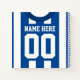 8.5" x 8.5" Spiral Notebook with laminated covers, and a choice of paper style, including sketchbook, ruled, half ruled, graph. The front and back of the notebooks have customisable jersey style designs, allowing you to add your own choice name and number to the back, use the boxes to the right of the image to change the text.