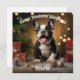 Introducing the "Jolly Paws & Presents Greeting Card"! Picture a charming flat card that encapsulates the sheer delight of the holiday season. The front features an endearing image of a black and white French Bulldog puppy, sitting in front of a beautifully adorned Christmas tree, with his tongue playfully peeking out. Surrounding the pup are festively wrapped presents, setting the scene for a heartwarming and joyous Christmas celebration.