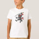 100% cotton so perfect for summer, It is a nicely designed t-shirt, the fabric is soft and the seams finished well, the body of the t shirt has no side seams. I bought a medium size for my two grandsons, aged 9 and 8 it will be slightly big on them but I would rather that than too small