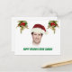 Justin Trudeau in a Santa hat between holly & mistletoe bunches | simple modern design | fully customisable text