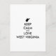 Customisable KEEP CALM and LOVE WEST VIRGINIA Postcard