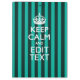 A personalised trendy vibrant turquoise stripes decor Keep Calm and Carry On style saying on a custom gift. Humourous or whimsical try on your creative words on the two editable lines of text. Remember to use CAPITAL letters for best results.