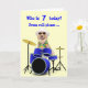 Customisable kid's birthday with a Lab on the drums. You can change the background colour, change the text, fonts and colours of fonts. Be sure to change the number "7" on the front and "YOU" to a name on the inside. The drums are thanks to clker.com.