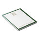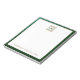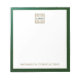 Elevate your note-taking experience with this customisable luxury notepad featuring a square logo image at the top with your company name in gold classic block typography on a white background framed in green trim. Perfect for any office or home setting.