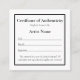 Customisable miniature Certificate of Authenticity cards for artwork in a square black design.