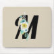 Customisable Monogram w/White & Aqua Floral on Tan Mouse Pad